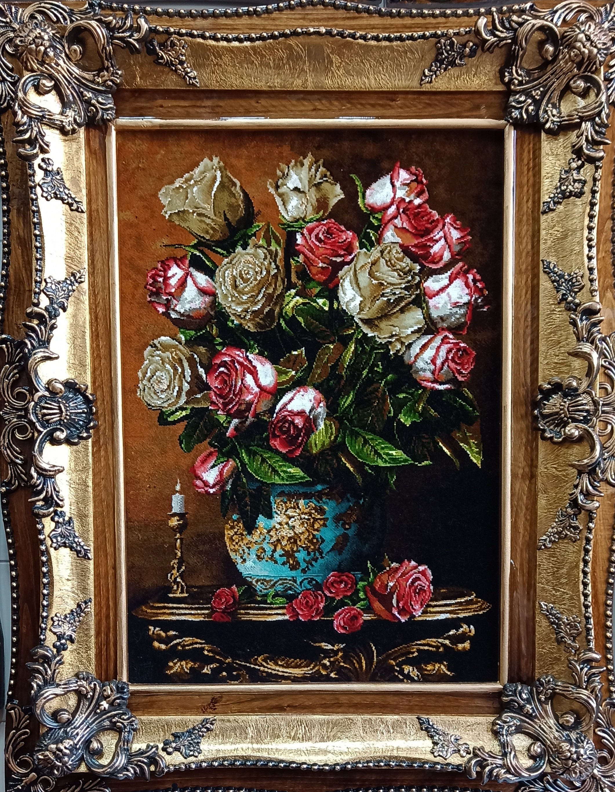 تابلو فرش دستبافت گل و گلدان رز آفاقی۱۷٬۵۰۰٬۰۰۰ تومان