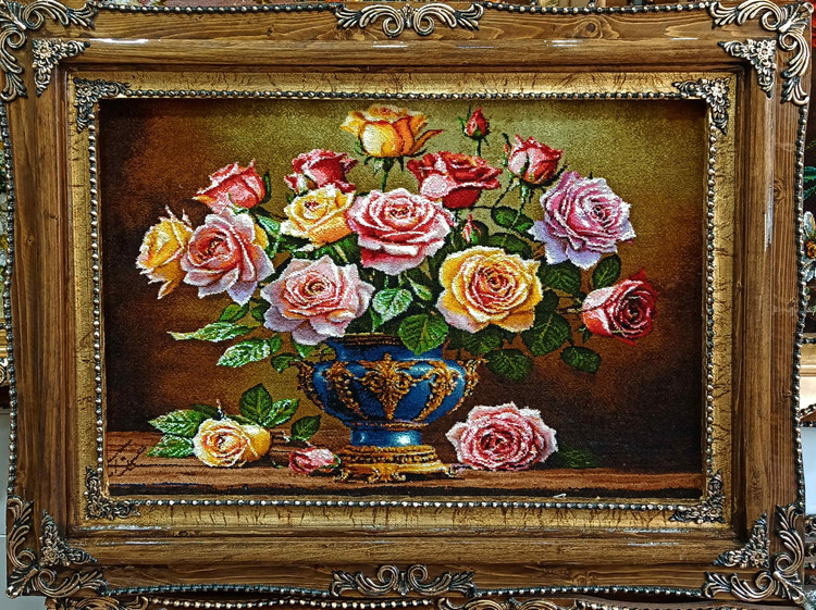 تابلو فرش دستبافت گل ابریشم