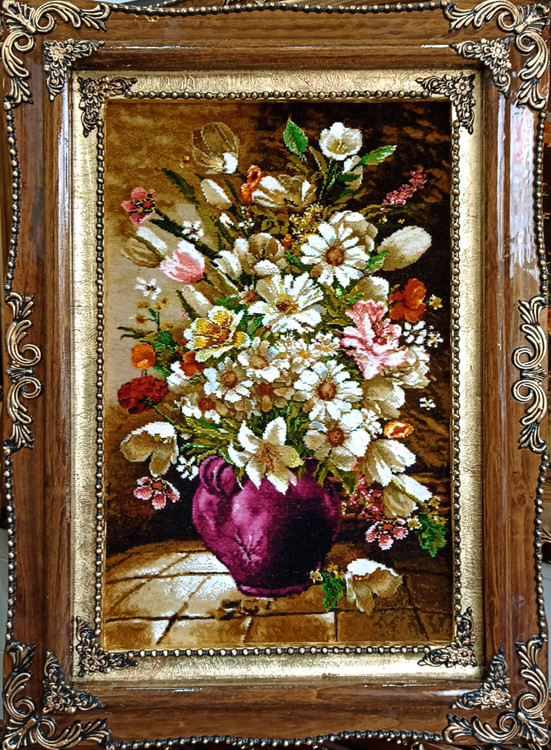 تابلو فرش دستبافت گل و گلدان عمودی 01